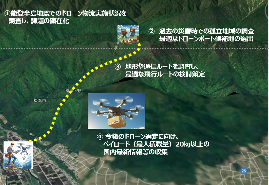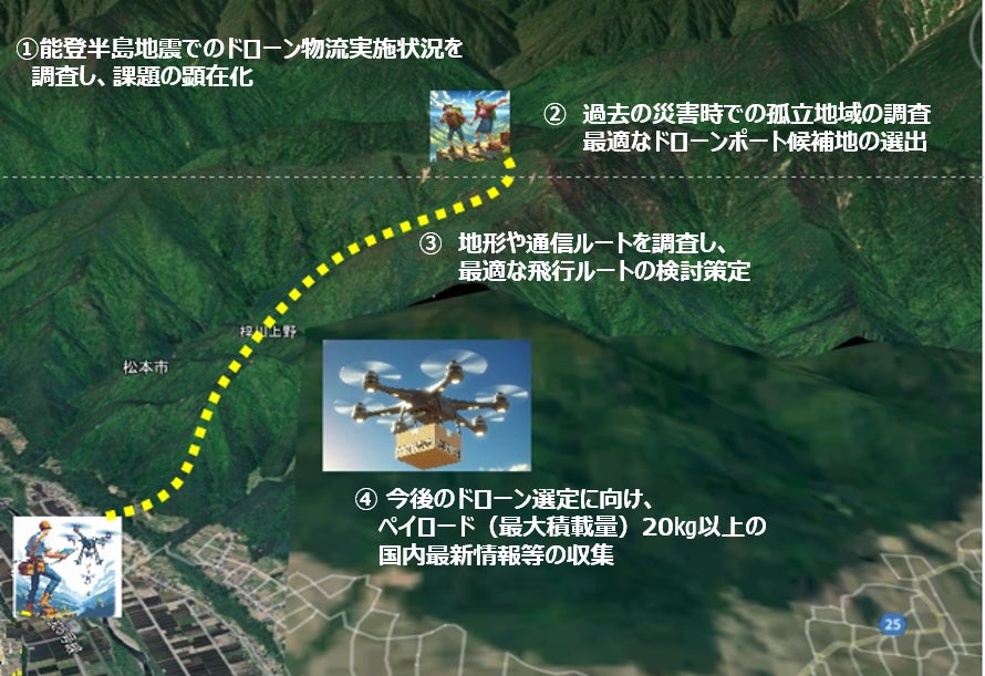 長野県松本市における「災害時孤立可能性地域」への「ドローン物流スキーム」構築のための調査研究プロジェクト開始