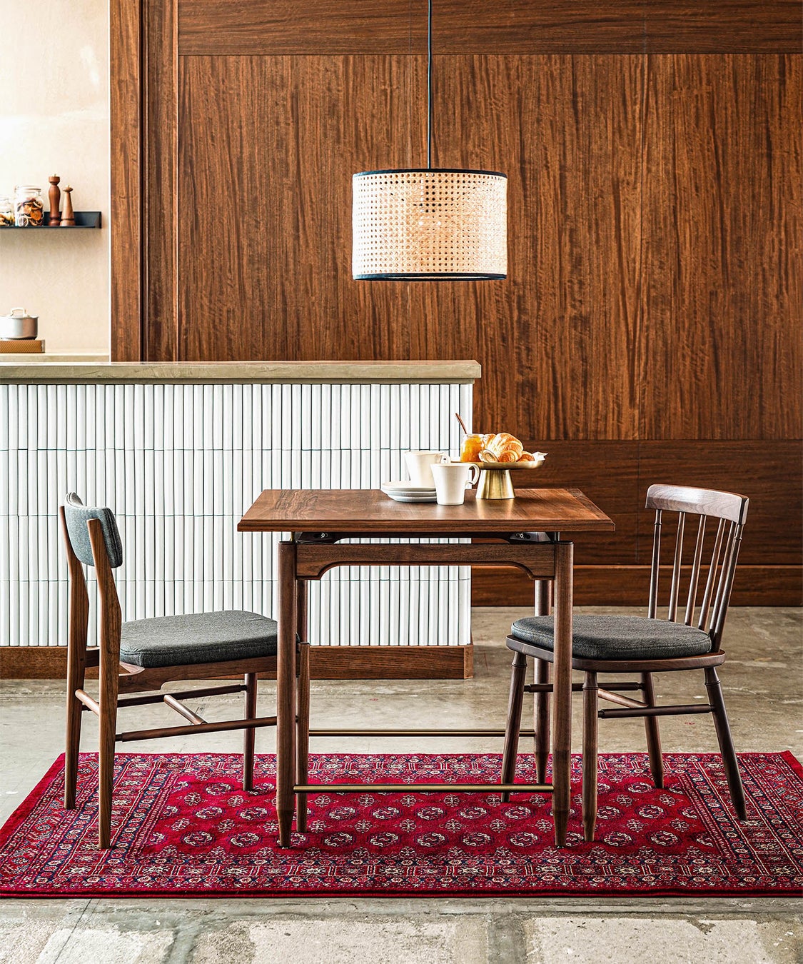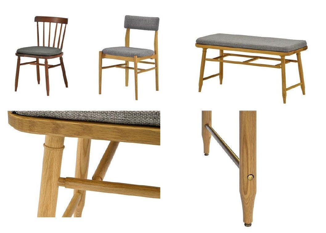 ダイニングテーブルと合わせてお使いいただくチェアも、ウォールナット材とオーク材の2種類の材を使用。背もたれにスポーク状のフレームを施した、抜け感のあるデザインのEPI Chair(エピチェア)と、背もたれにクッション材を施したPREMIE Chair(プリミエチェア)に加え、大人2人が横並びで座れるEPI BENCHI(エピベンチ)の3種類をご用意。ダイニングテーブル同様に、細部の意匠を凝らした、こだわりのデザインに仕上がっています。