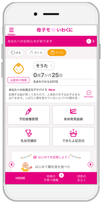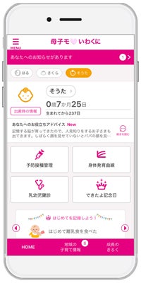 この度、ICTを活用した子育て支援策の更なる充実のため、「母子モ♡いわくに」を導入しました。このアプリでは、市や県からの子育てに関する情報配信や予防接種のスケジュール管理などのサービスが利用できます。
