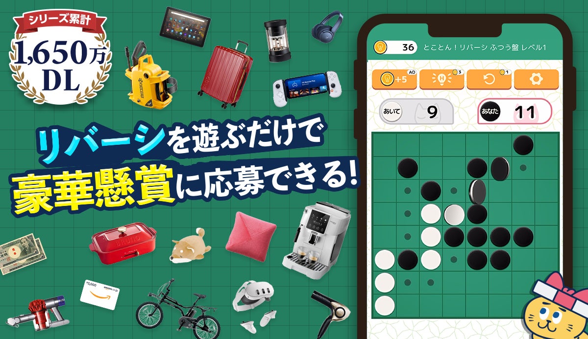 定番ボードゲーム「リバーシ」が遂にシリーズ累計DL数1650万超の「パズルde懸賞」シリーズの新規タイトルとして登場!「リバーシde懸賞」正式リリース!