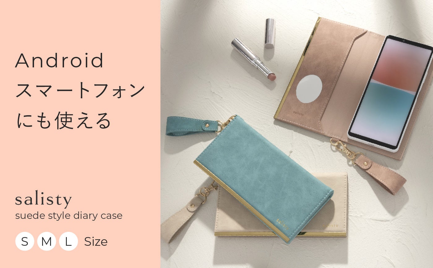 「salisty」スエードスタイルダイアリーケースがリニューアル新発売。Android機種対応マルチタイプにサイズ違いの2型が登場