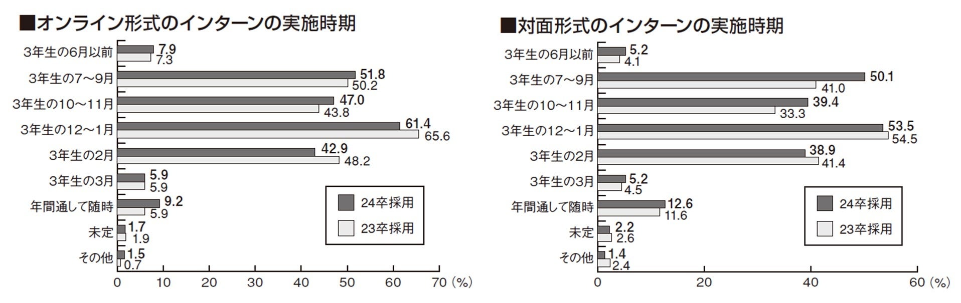 (1)「3年生の夏や秋」にインターンシップを実施した企業が増加。早期化が進む
