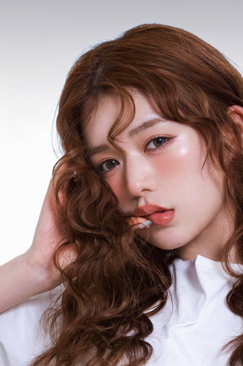 ヌードカラーとウェーブヘアでトレンドを取り入れて。