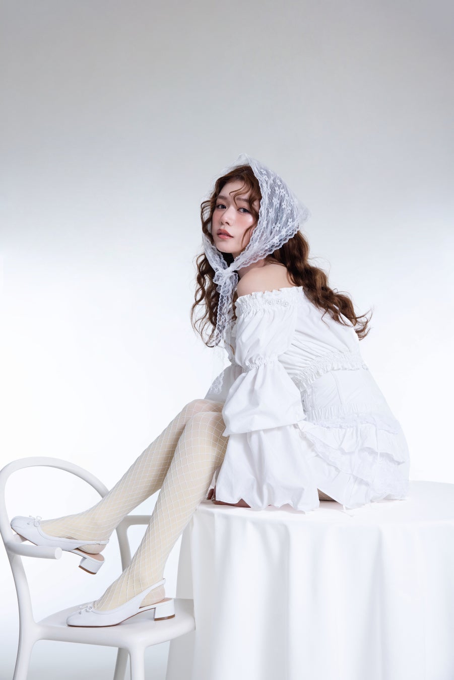 ヘアアクセは韓国トレンドを取り入れたレースシュシュを。