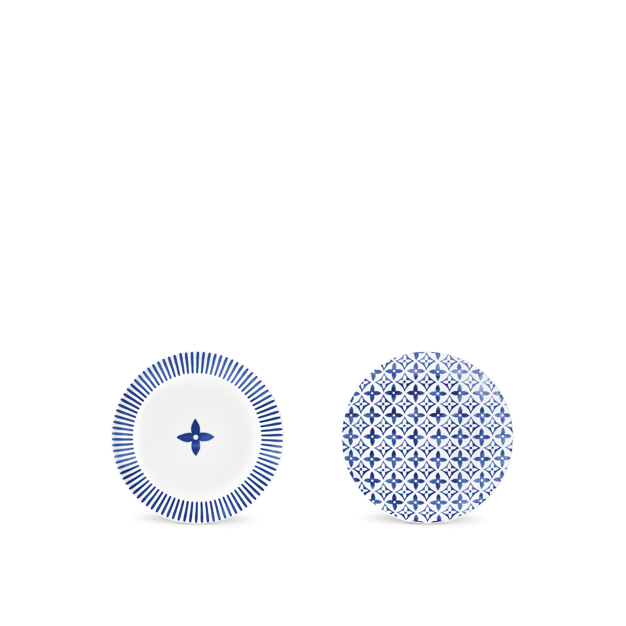 リモージュ磁器で作られたテーブルウェア「モノグラム・フラワー タイル」は、ブルーとホワイトのベーシックな配色で、磁器の持つシンプルかつタイムレスなエレガンスを表現。メゾンを象徴するモノグラム・モチーフが、真っ白な背景に水彩画のような繊細なエフェクトで描かれたデザインが印象的です。可憐なプレートから大きめのボウルまでさまざまなタイプが揃い、ティータイムからディナーまで、あらゆるシーンに夢のような雰囲気を添えます。