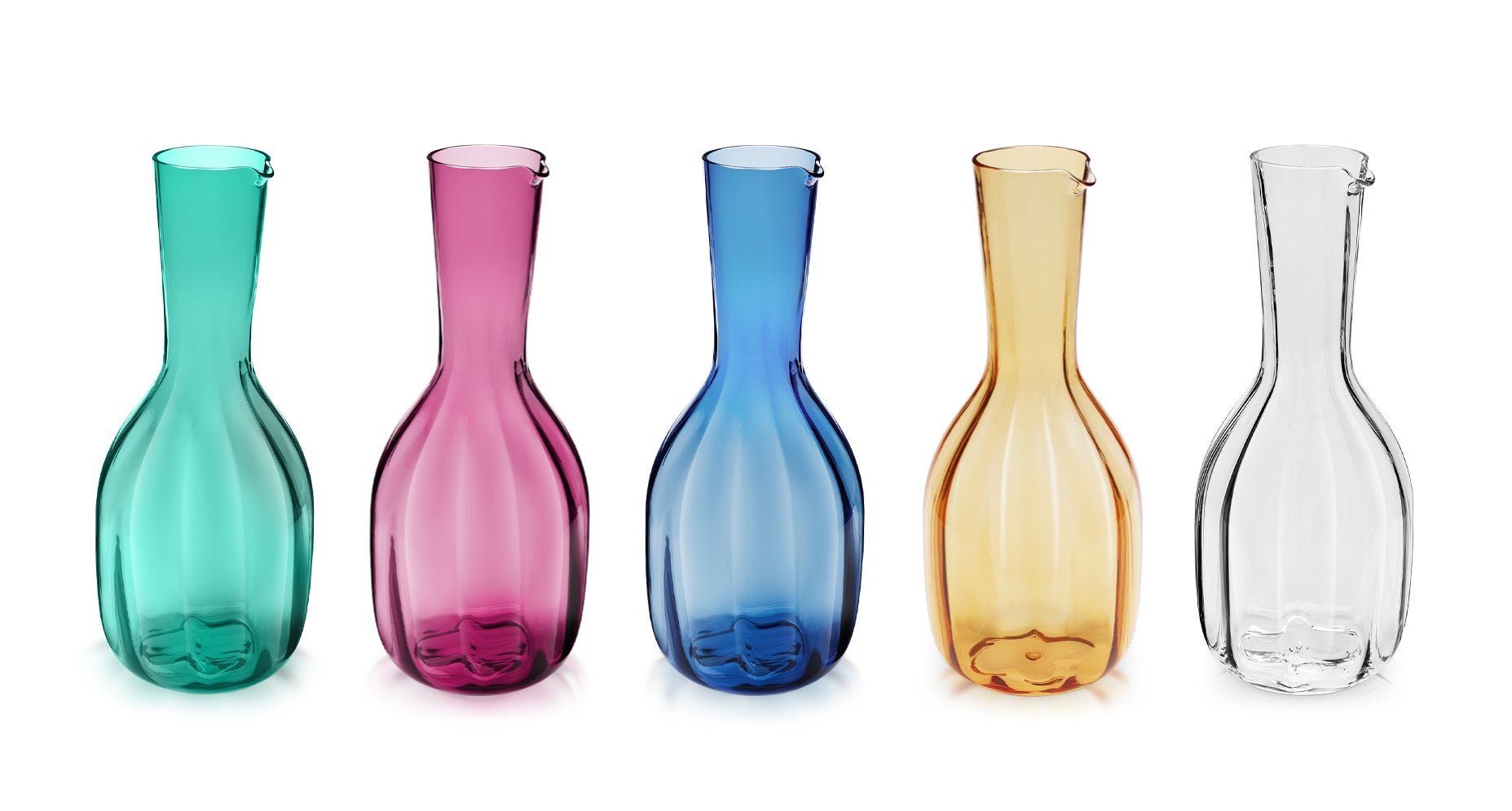 コレクションを締めくくる「フラワー・カラフ」も同じく、サファイアブルー、アンバー、エメラルド、そしてヴェネツィアンルビーという深みのある魅力的なカラーと、繊細で透明感のあるクリスタルクリアで展開。これらのデキャンタは、「ツイスト・グラス」と美しくコーディネートすることも可能。どちらのコレクションも、ムラーノガラスのサヴォアフェール(匠の技)が活かされており、ムラーノガラスの巨匠シモーネ・セネデーセの熟練の技がそれぞれの作品にユニークな個性を与えています。