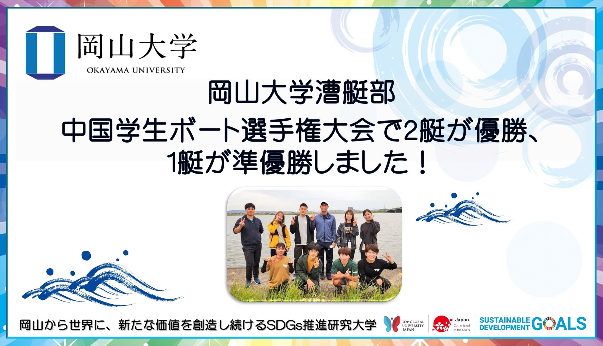 【岡山大学】岡山大学漕艇部「第66回中国学生ボート選手権大会」で2艇が優勝、1艇が準優勝しました!