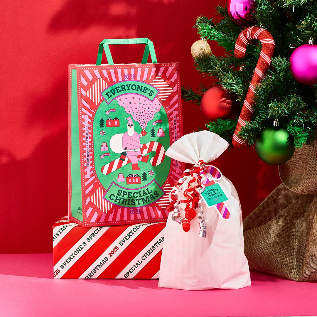ホリデーシーズン限定のギフトラッピング(無料)や、ショッピングバッグ(20円)が登場!