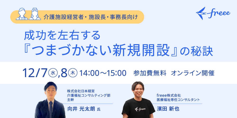 今回は介護福祉事業に精通する株式会社日本経営の向井光太朗 氏をお招きして新規開設や開設前後のあり方について解説します。