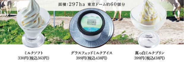 ストレスフリーな自然環境で牛を育てるサスティナブルな自社牧場「北海道美幌峠牧場」。297ヘクタールの広大な自然の中でのびのびと放牧され、牧草だけを食べて育った乳牛からとれる貴重なグラスフェッドミルクを使用した「ソフトクリーム」はここでしか味わえない一品です。