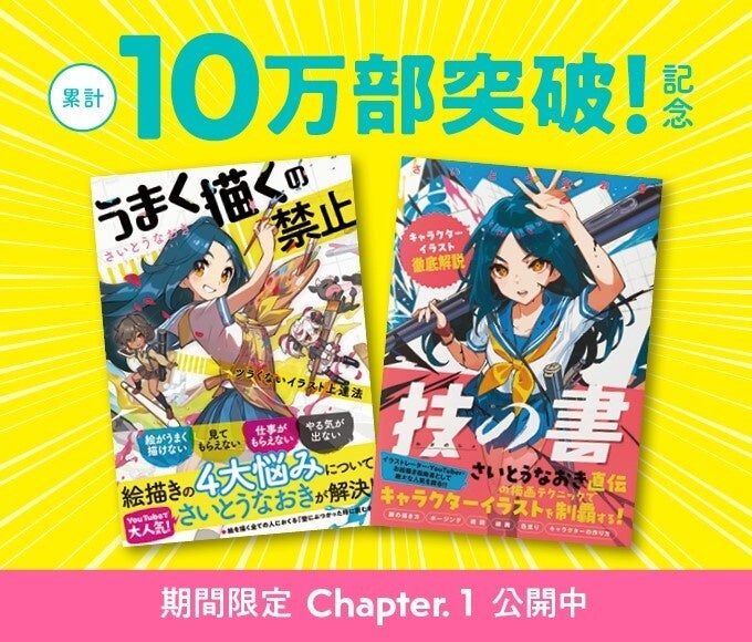 累計10万部突破記念「さいとうなおき 夏の技法書フェア」開催!購入特典として、描く力が湧いてくるオリジナル小冊子「やる気!元気!なおき!BOOK」を一部書店にて配布いたします。