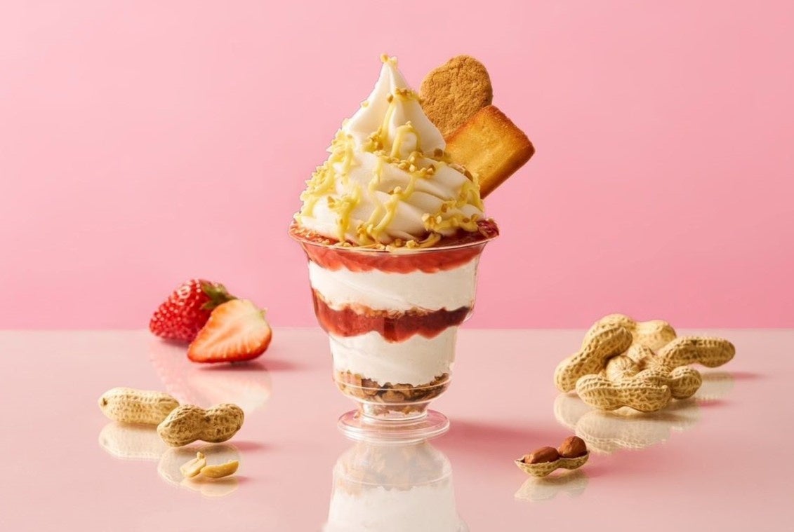 いちごの程良い酸味×風味豊かなピーナッツ。コクのあるソフトクリームの絶妙なハーモニー