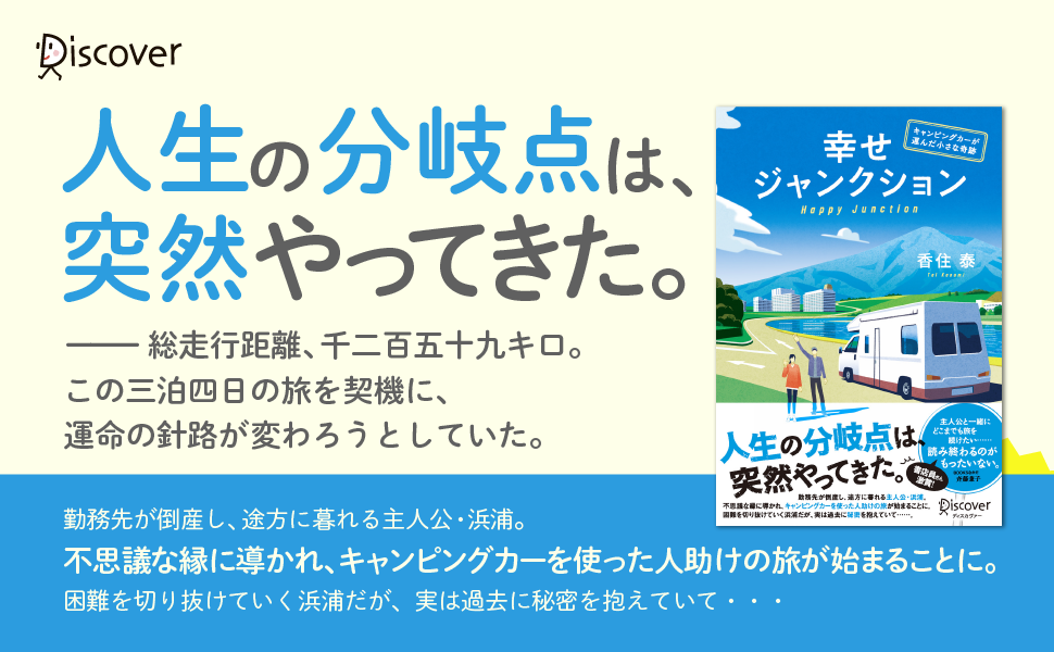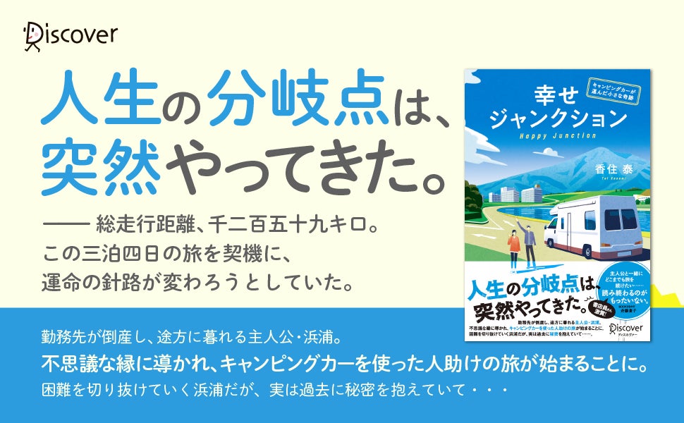 株式会社ディスカヴァー・トゥエンティワン(本社:東京都千代田区、取締役社長:谷口奈緒美)は2023年1月27日に『幸せジャンクション──キャンピングカーが運んだ小さな奇跡』(香住泰・著)を刊行しました。