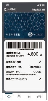 ・会員証としてポイントの加算や利用、またステータスの確認が可能になります。