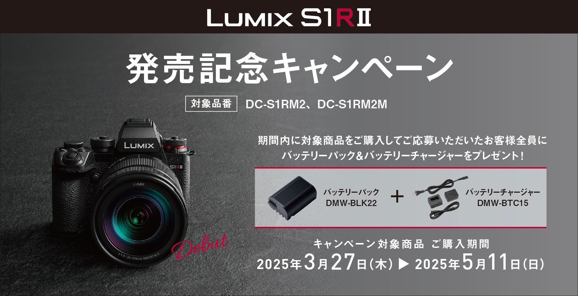 パナソニック株式会社は、フルサイズミラーレス一眼カメラ LUMIX S1RIIをご購入の上ご応募いただいた方を対象とした「LUMIX S1RII 発売記念キャンペーン」を2025年3月27日(木)より実施します。