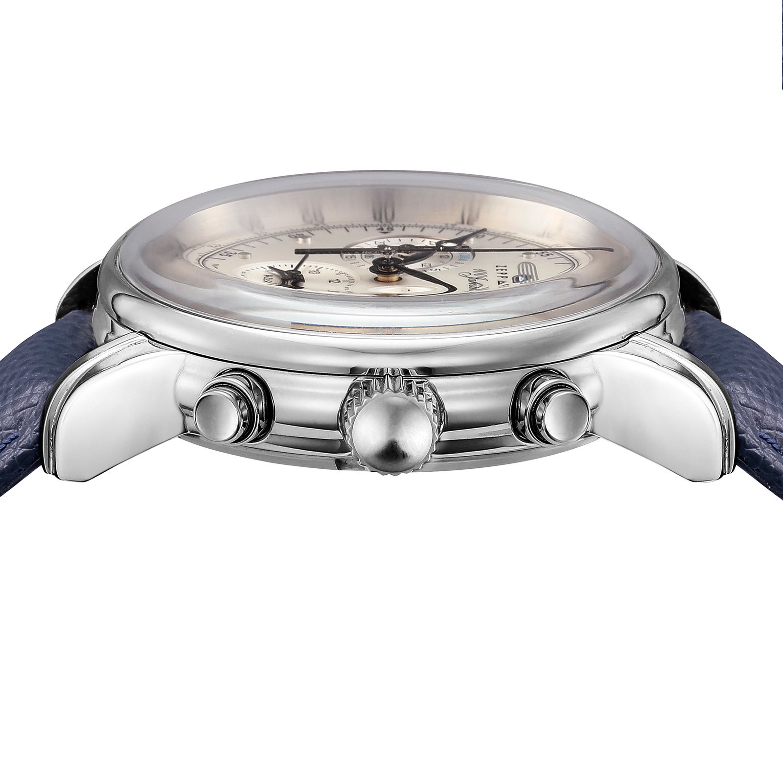 クォーツ Ronda 5130.D / ステンレススチール / 5気圧防水 / カーフレザー(ワインハイマー社製レザー) / イージークリック / 12時間アラーム / タキメーター/テレメーター / 30分計・12時間計クロノグラフ/ケースサイズ42mm径