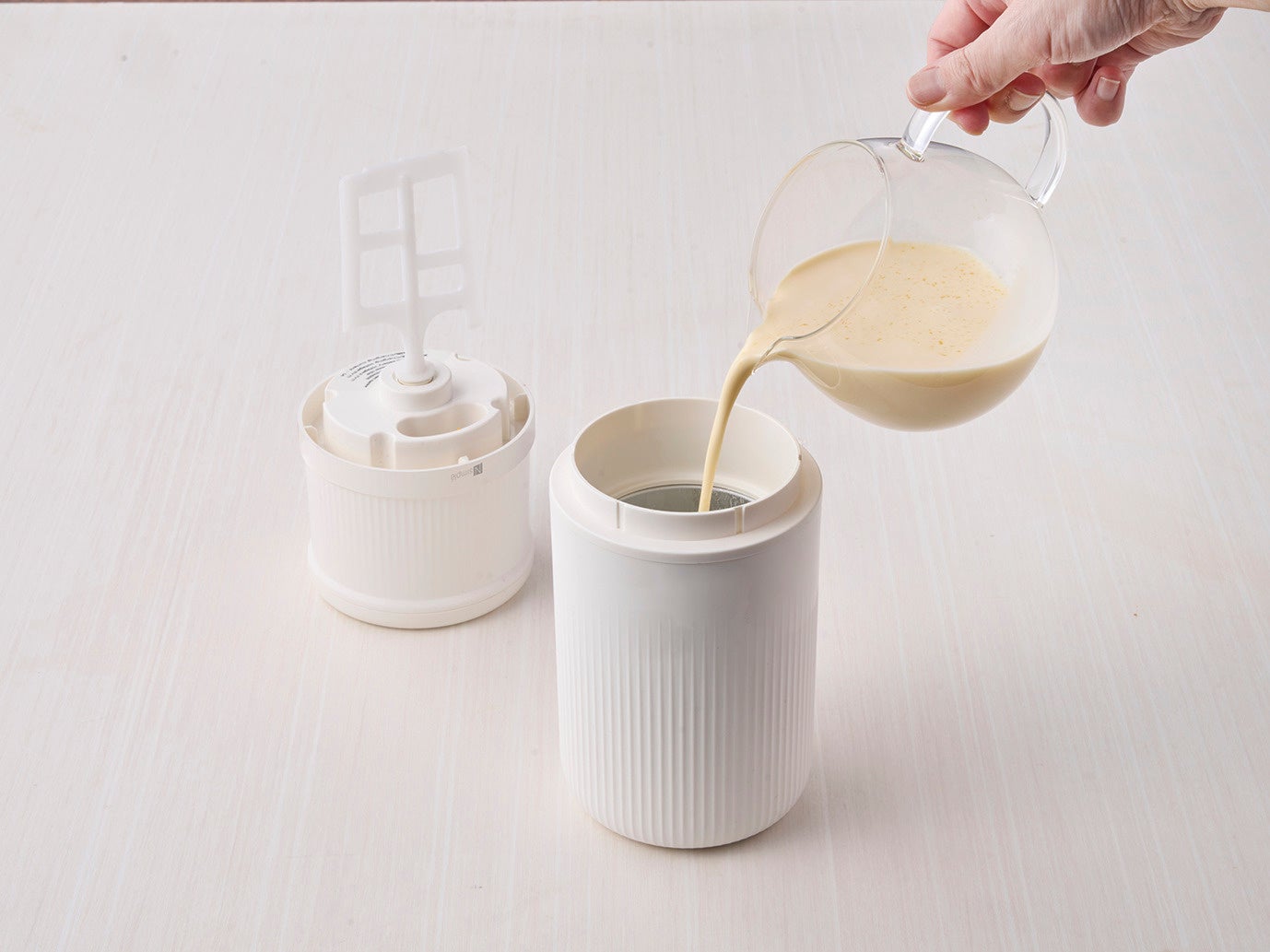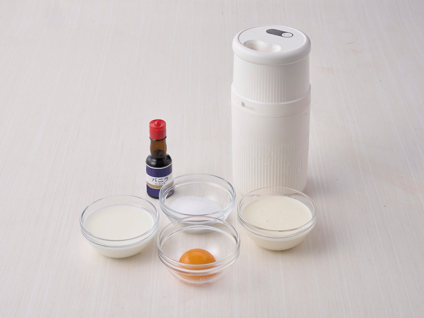 アイスクリームの材料(※1)を保冷用機(※2)に入れ、タイマーをセット。電源ボタンを押せば本体に取り付けたパドルが自動で食材をかき混ぜてくれるので、どなたでも簡単な操作でアイスクリームを作ることができます。