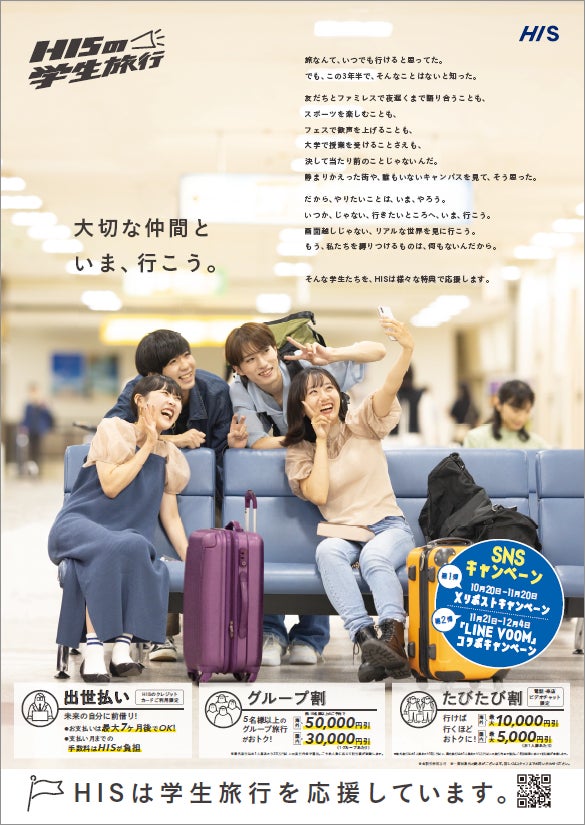 HISの学生旅行「大切な仲間と、いま、行こう。」プロモーション開始
