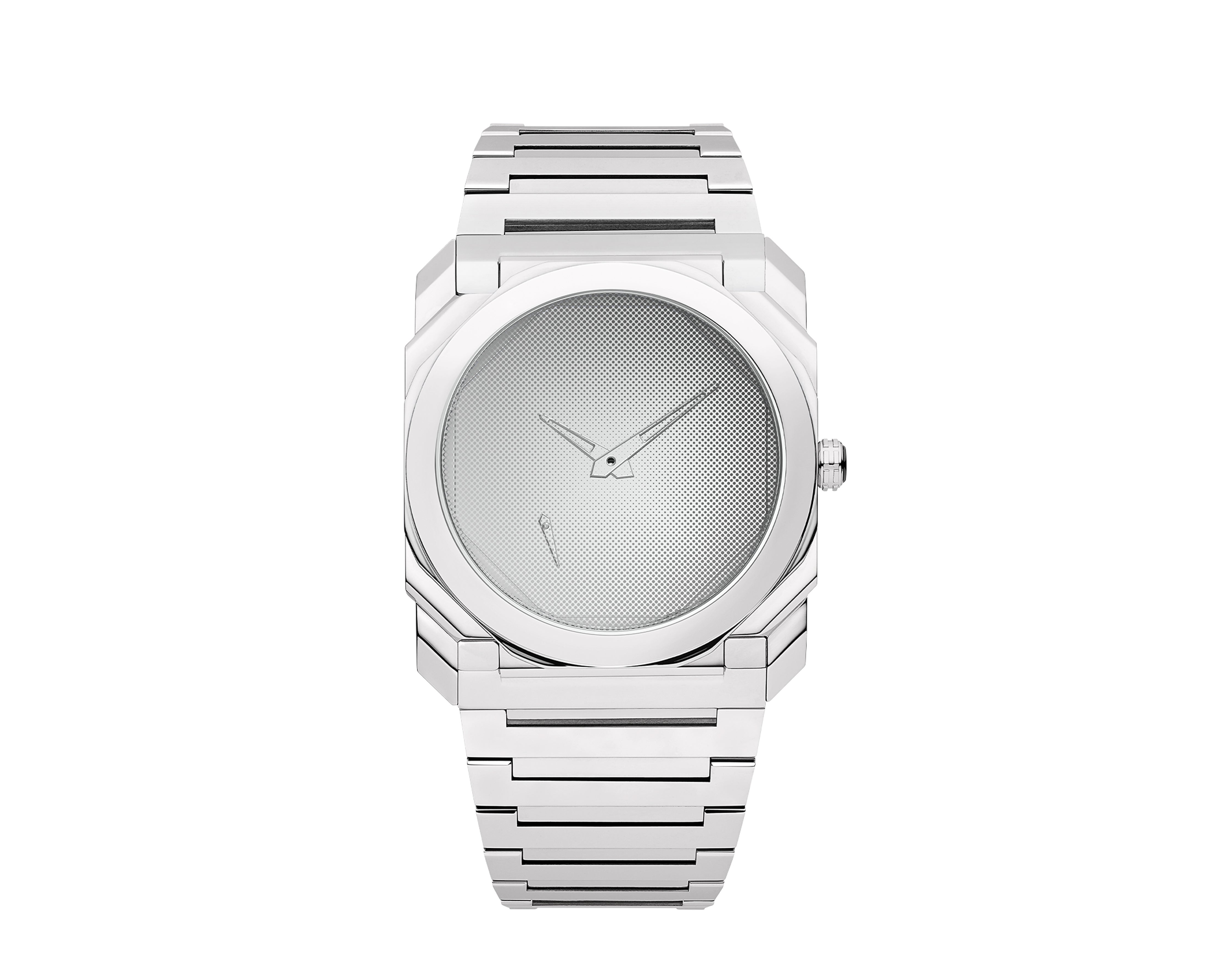 「オクト フィニッシモ 妹島和世 限定モデル」は、素材と透明性、そして見えるものと見えないものとのコントラストに着目し、氏の作品に共通する美的なスタイルを映し出します。強いミラー効果を放つサファイアクリスタルのダイヤルが配され、妹島氏がデザインしたドットパターンが豊かな表情を添えます。ポリッシュ加工が施されたステンレススティール製のケースとブレスレットが、その魅力をさらに高めます。