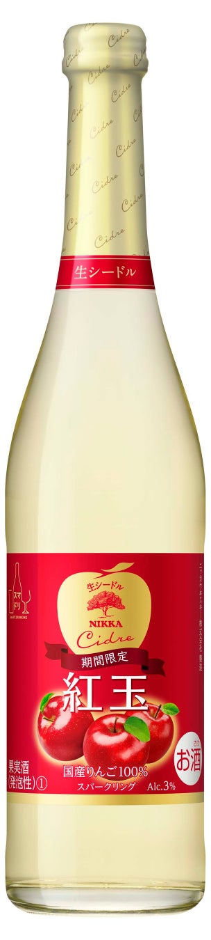 「ニッカ シードル」は国産リンゴを100%使用し、生のリンゴを丸ごと搾った果汁を発酵させることで、リンゴのみずみずしい味わいが楽しめるスパークリングワインです。製造工程で熱を加えない“生シードル”なので、リンゴ本来の香りと自然な甘さを楽しむことができ、アルコールエントリー層からスパークリングワイン愛飲者まで幅広い層から支持されています。今回、季節に合わせたシードルの提案を通して、シードル市場のさらなる活性化を図るとともに、お客さまの満足を追求し“期待を超えるおいしさ、楽しい生活文化の創造”を目指します。
