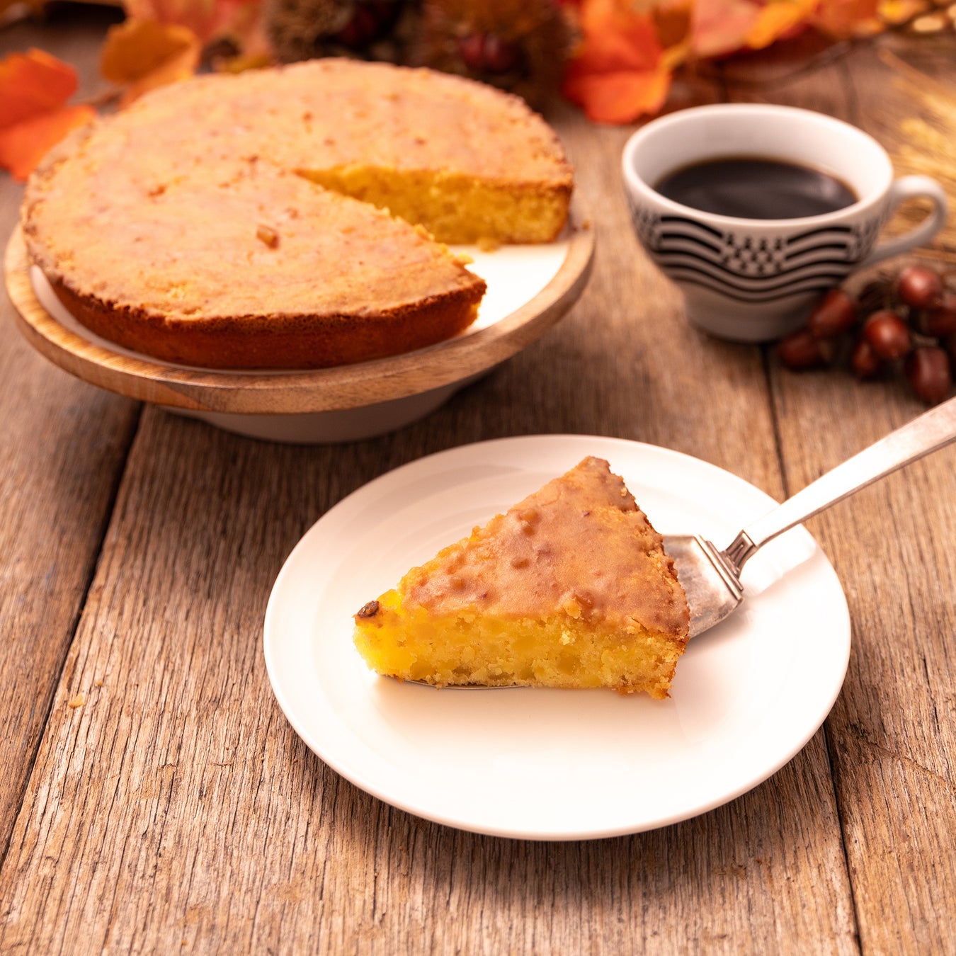 栗が入ったガトー・ナンテに、栗の甘露煮を合わせたコーヒー風味のフォンダンをあしらいました。