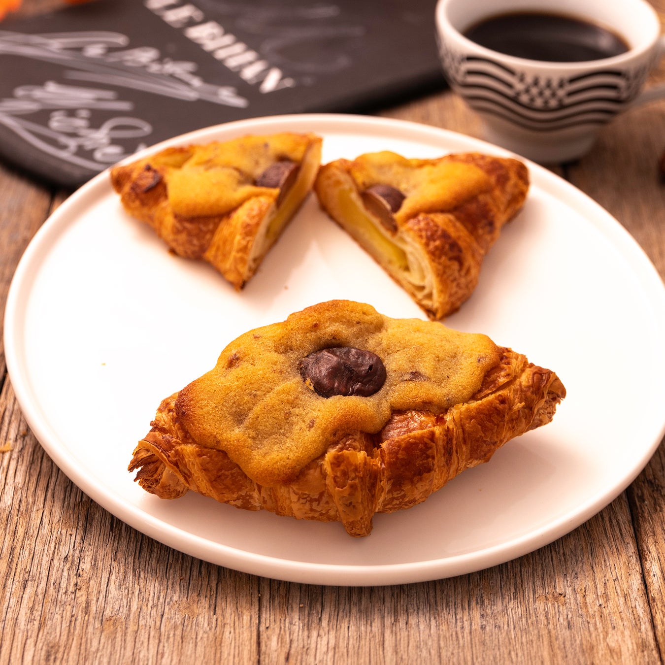 粒入りの栗餡をサンドしたクロワッサンに、渋皮栗のアーモンドクリームを絞りました。