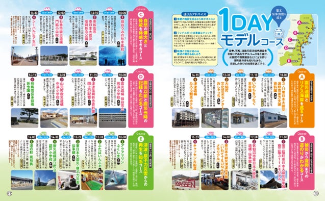 青森県、岩手県、宮城県及び福島県の4県にある震災伝承施設の中から、駐車場等があり、館内案内や語り部等のいるものを中心とした75施設について、開館時間、展示内容や施設に込められた想い等を紹介しております。また、震災を経験された方から当時の状況について話を聞く語り部プログラム、被災地でのフィールドワークを通じて復興の過程を学ぶことができる学習プログラムのほか、現地の交通情報も盛り込んでいます。