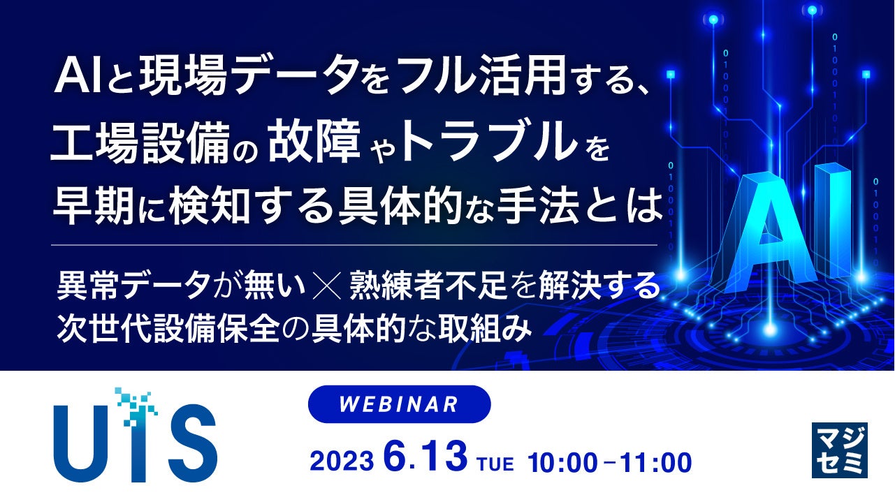 このセミナーでは「正常データ」のみで故障・トラブル予知が可能な、AI予兆検知構築支援サービス「SAILESS(サイレス)」を中心に、どんなデータを使えばいいのか、どんなアルゴリズムで構築したのか、メンテナンスはどうすればいいのか、といった、実際に当社が実施した、具体的な製造現場の実例についてご紹介いたします。
