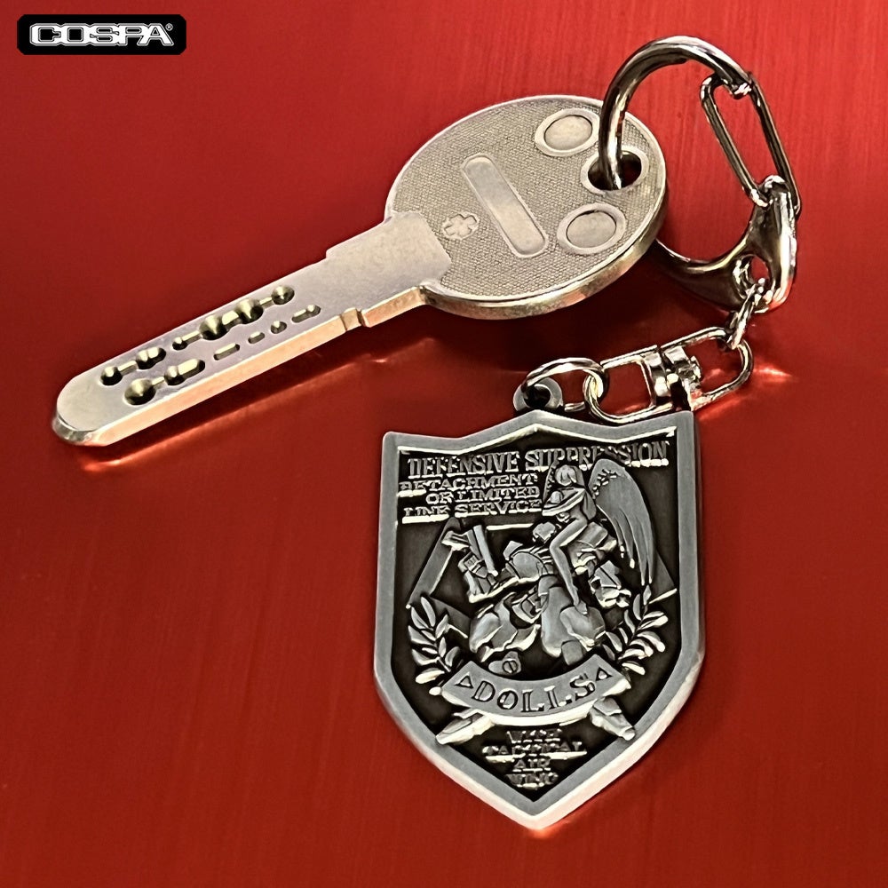 人型兵器パワーローダーで編成された第177特務大隊DoLLSのエンブレムをデザインしたメタルキーホルダー