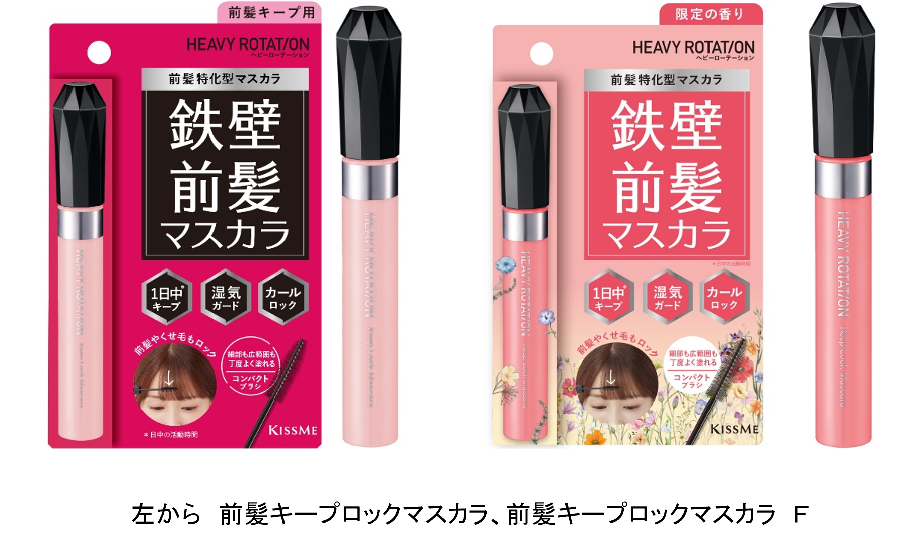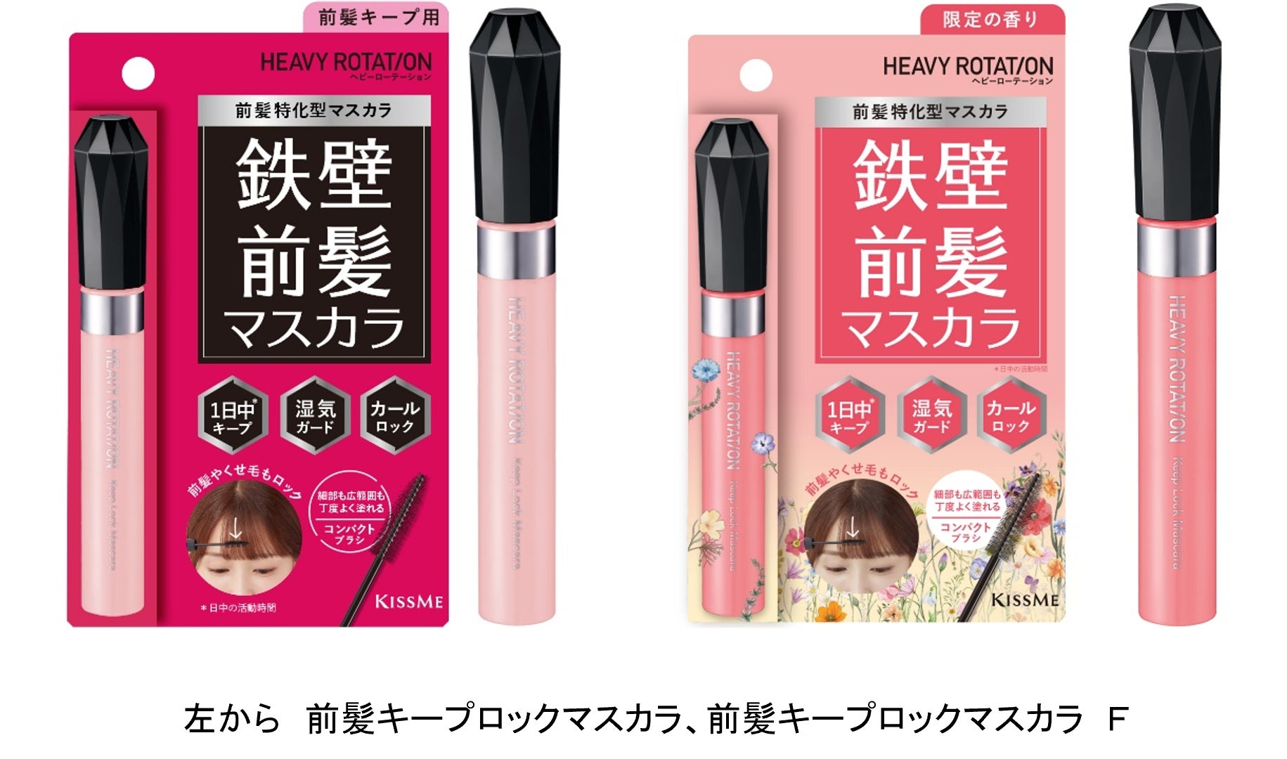 さらに、花束を閉じ込めたような優雅で、香水を纏ったかのような華やかなフローラルな香りを楽しめる『前髪キープロックマスカラ F』も数量限定で発売いたします。