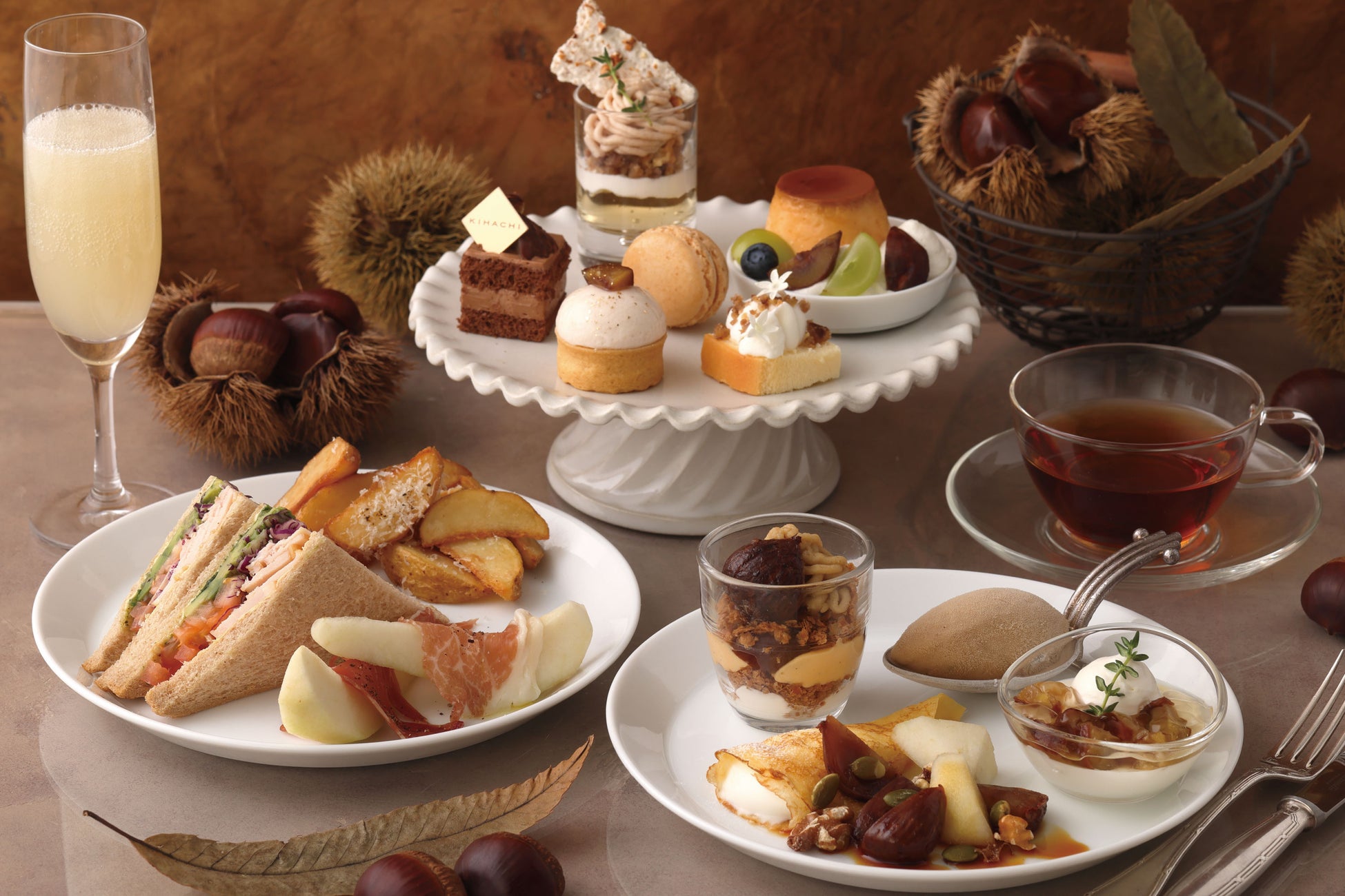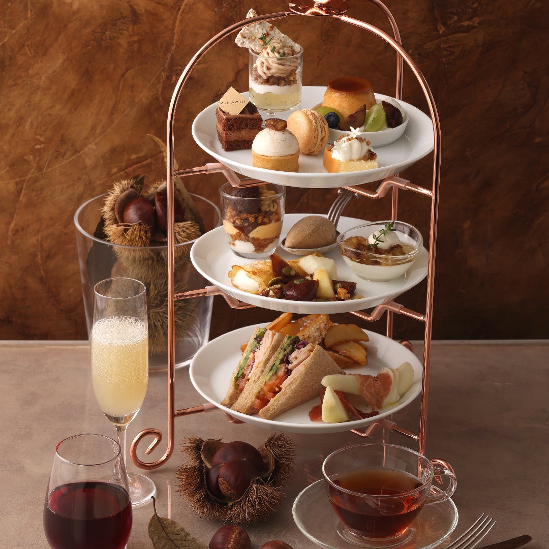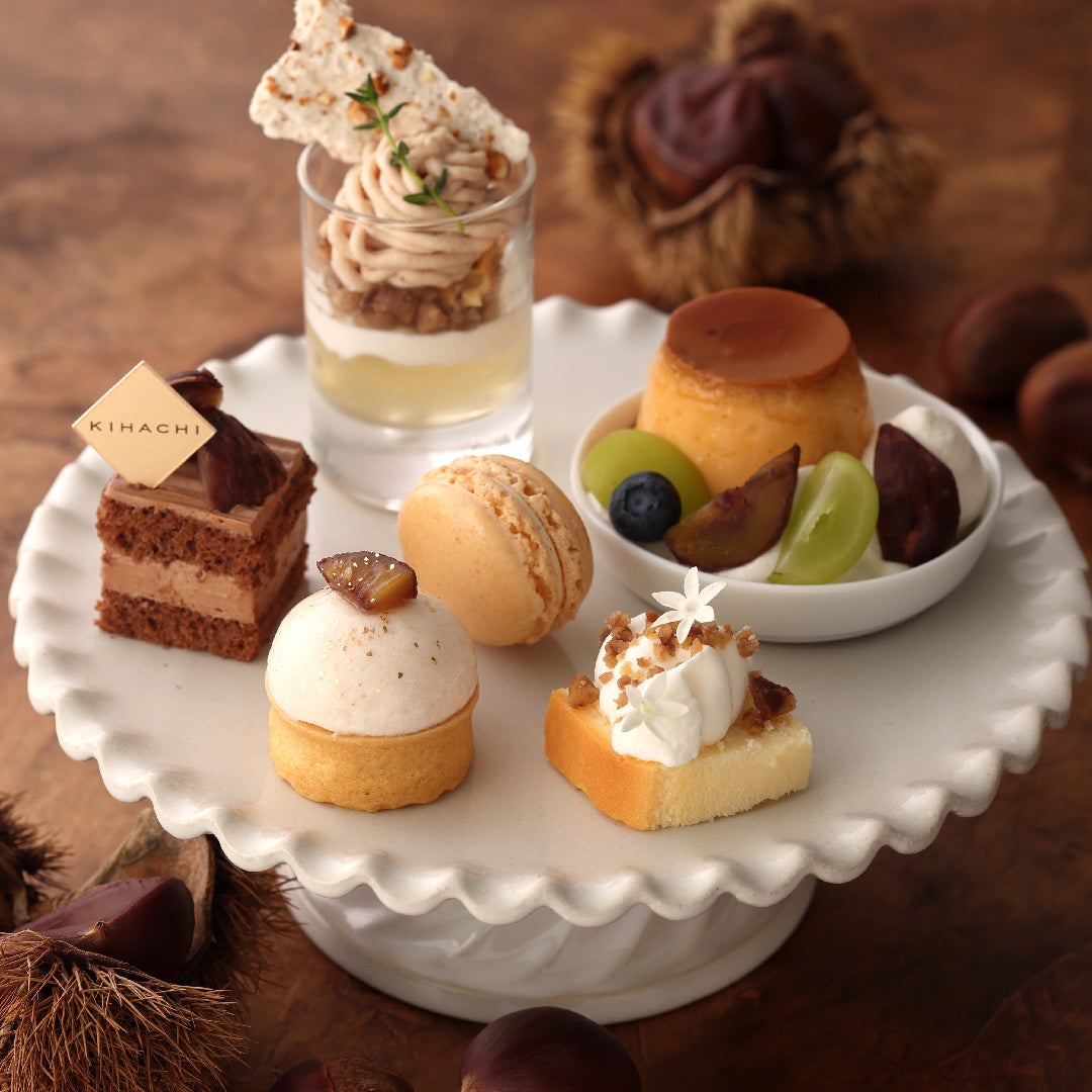 ほっくりと甘い栗を主役にした「KIHACHIのアフタヌーンティー ~マロンスペシャル~」を発売します。スイーツ&セイボリーは新作を含む13種をご用意しました。