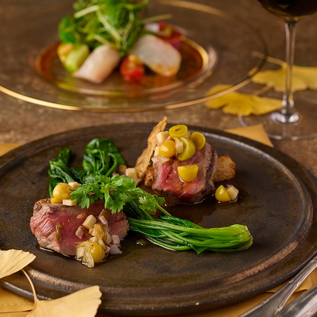 ・こんがりジューシーにローストした黒毛和牛肉を、黄金色の銀杏、干し海老ソースで