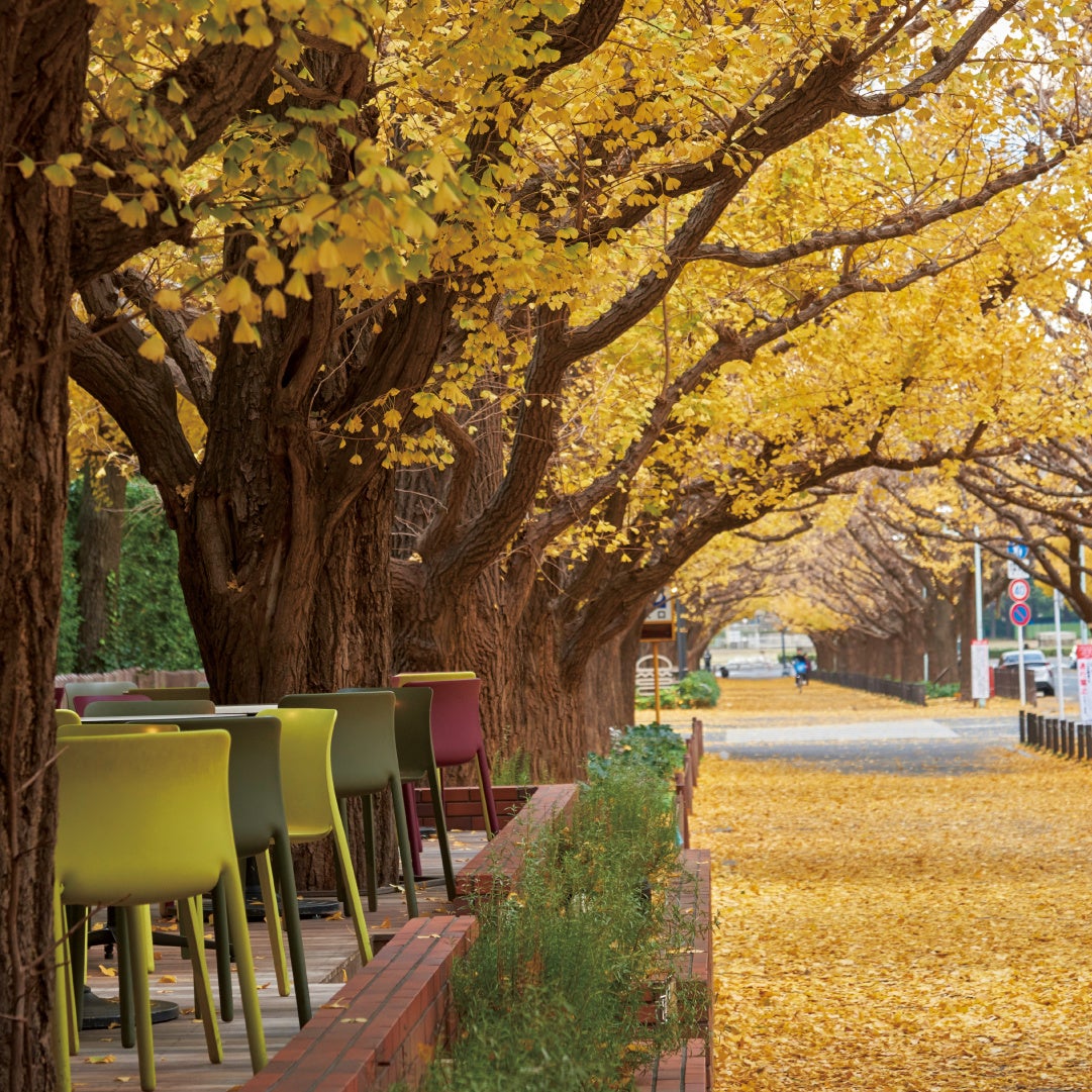 黄金色に輝くいちょうを間近で楽しめる青山本店では、この秋も黄葉シーズン限定メニューを発売します。