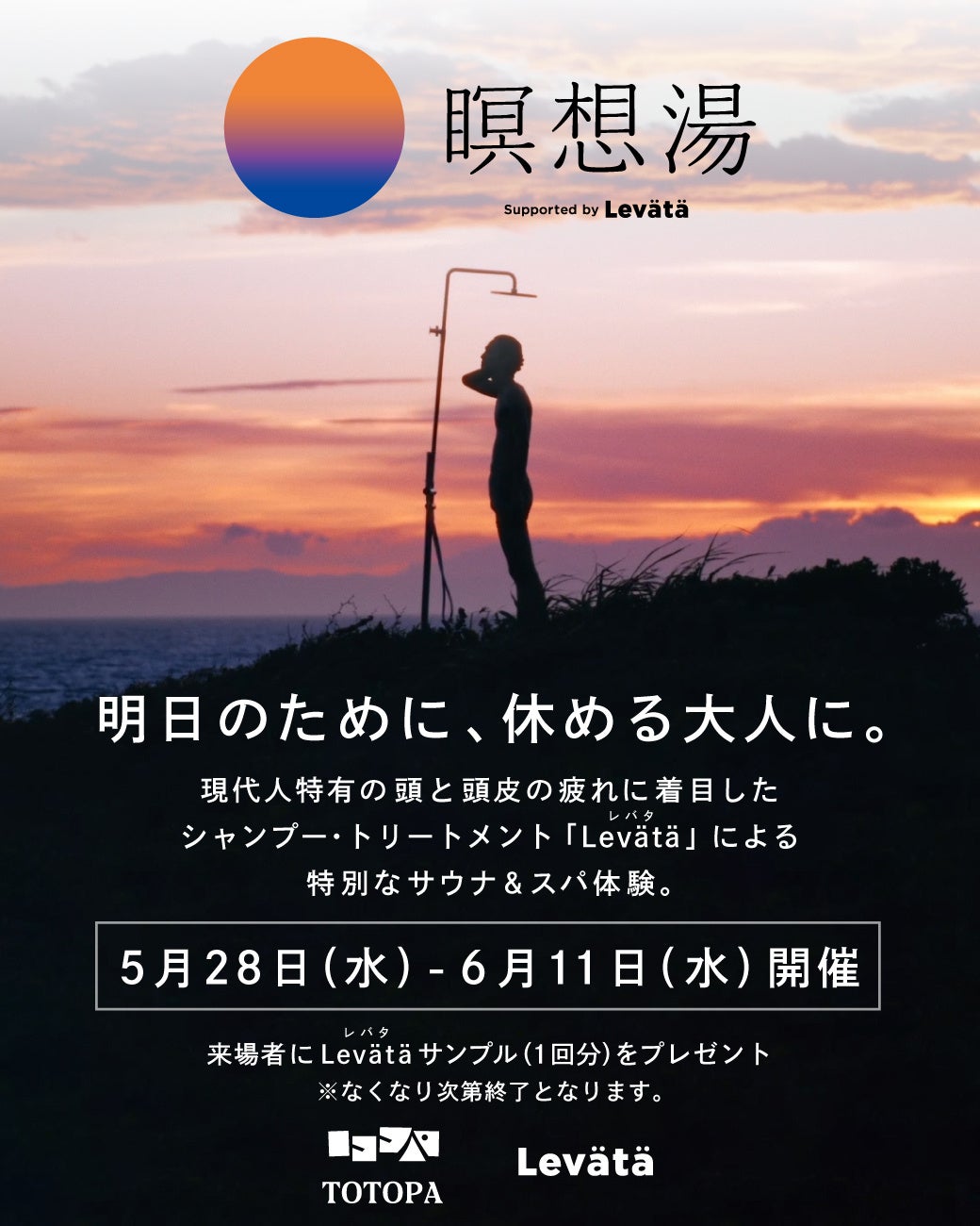 “瞑想シャンプー” Levätä(レバタ)が贈る【瞑想湯】、都市型スパ施設TOTOPAにて開催!