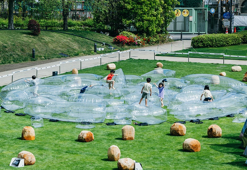 ① 次世代育成の一環として、子どもたちに地球とのつながりを深める「遊び場」を提供するイベントを富山県富岩運河環水公園、富山県美術館で開催