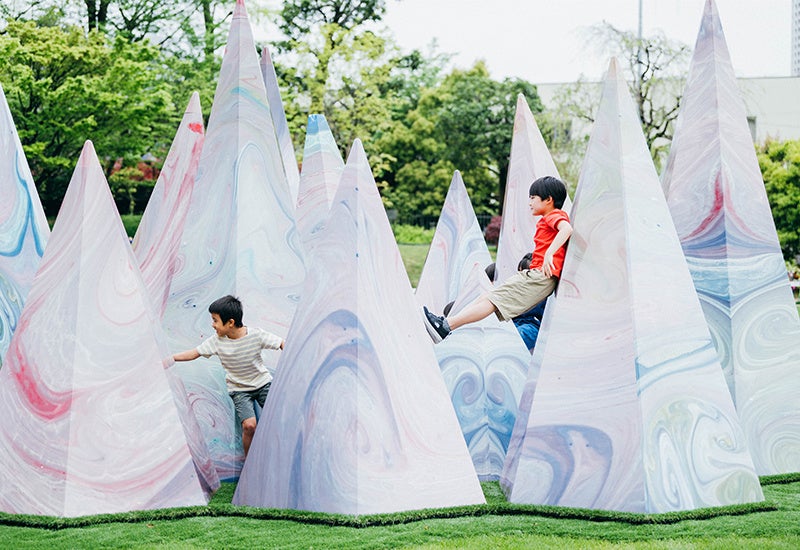 ② 地球を構成する5つのエレメントをテーマにした遊具を建築家とコラボレーションで製作。富山県美術館内ではワークショップやポップアップストアも展開