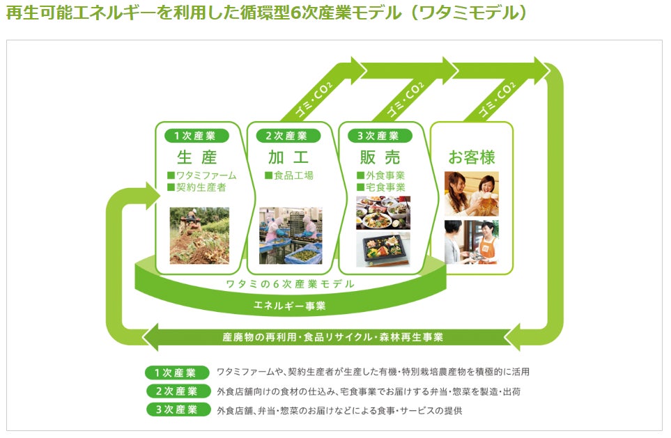 ワタミ株式会社(東京都大田区、以下当社)は、現在、再生可能エネルギーを利用した循環型6次産業モデル(ワタミモデル)の普及に取り組んでいます。その一翼を担っている環境事業は、今年で活動25周年を迎えました。当初の活動は、ワタミグループ内の外食店舗の廃棄物の適正処理やリサイクル・リユースの促進、エネルギーの見える化、社員への環境活動の啓蒙などでした。その成果として当社は環境大臣が認定するエコファースト企業に選ばれています。