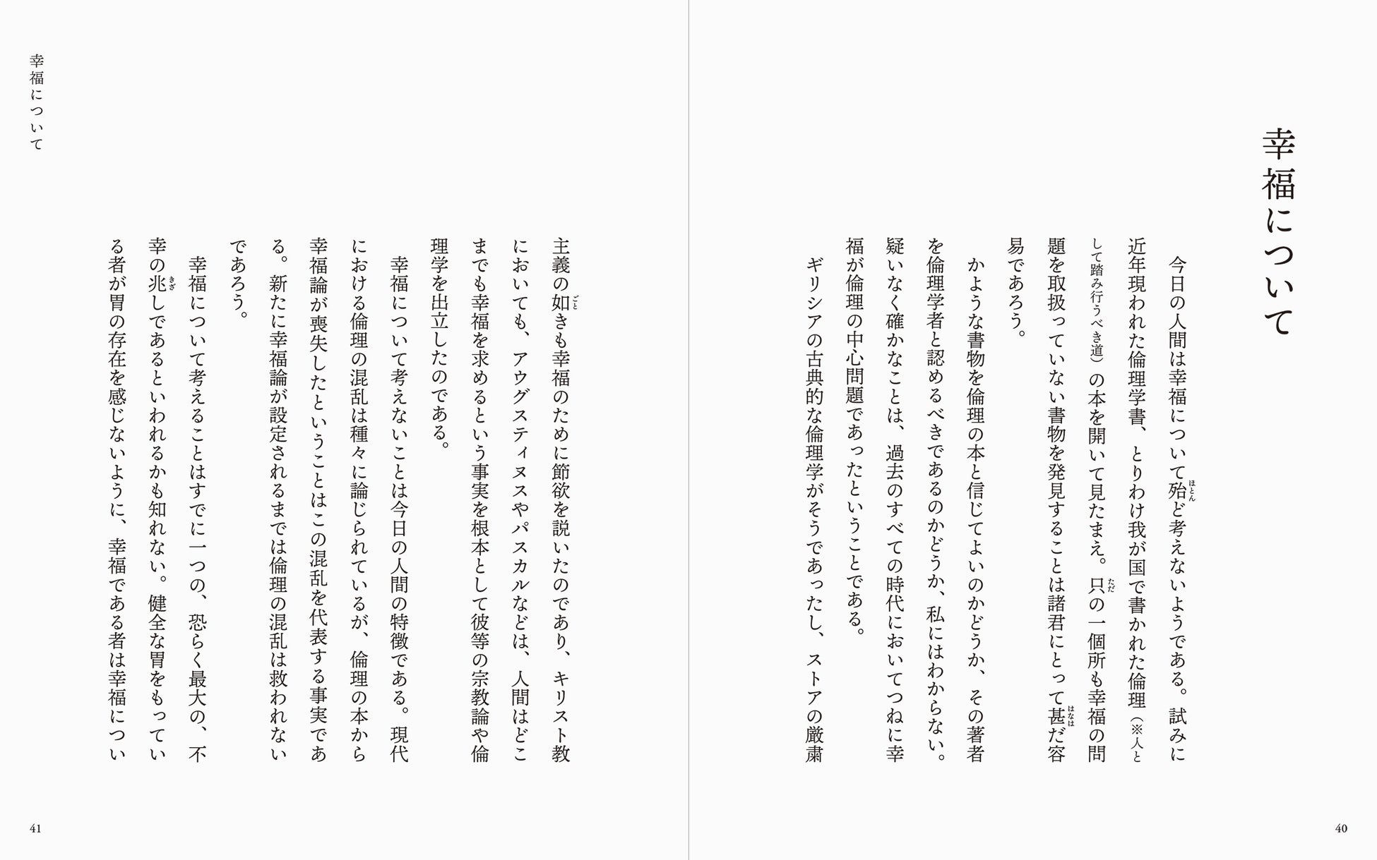 『人生論ノート』は、哲学者・三木清が、昭和前期、日本の「軍国主義」の社会情勢の中で、「幸福の要求」を論題として人生の諸相について綴った哲学エッセーです。死・幸福・習慣・虚栄・嫉妬・成功などの題目について語られています。確かにちょっと難解かもしれませんが、一生ものになる「お気に入りの一節」に出会えるかもしれない名著です。その世界感を視覚的に伝える大川裕弘氏の写真と、ときにズシンと、ときにしみじみと読者の胸奥に響くフレーズの組み合わせで、より親しみやすい構成になっています。※本書は『人生論ノート』の前半11題を掲載しています。