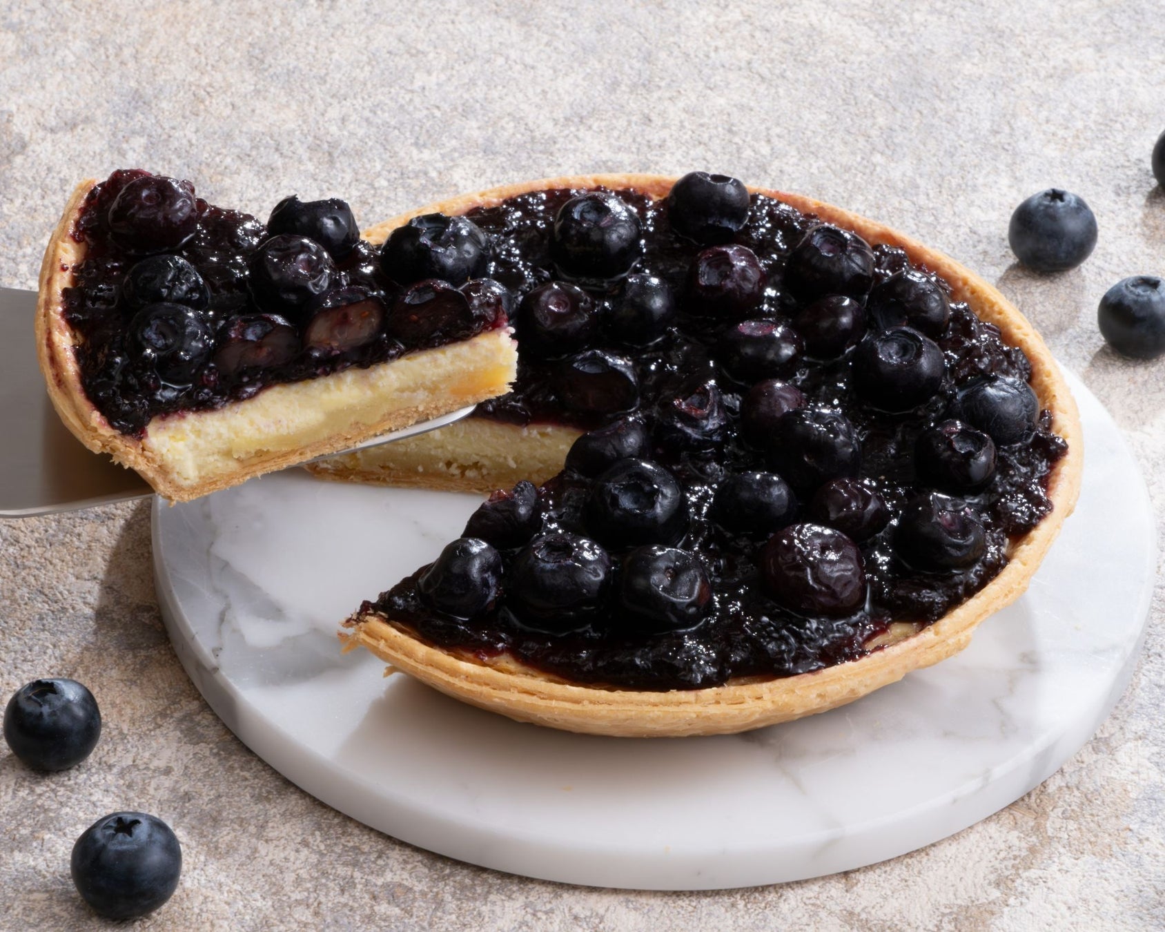 ブルーベリーの甘酸っぱさと、コクがありつつもさっぱりとしたベイクドチーズ、カスタード入りアーモンドクリームの香ばしさが絶妙に調和。天面には、ブルーベリーフィリングと果肉を敷き詰めて果肉感、素材のおいしさを活かした夏に食べたいタルトに仕上げました。