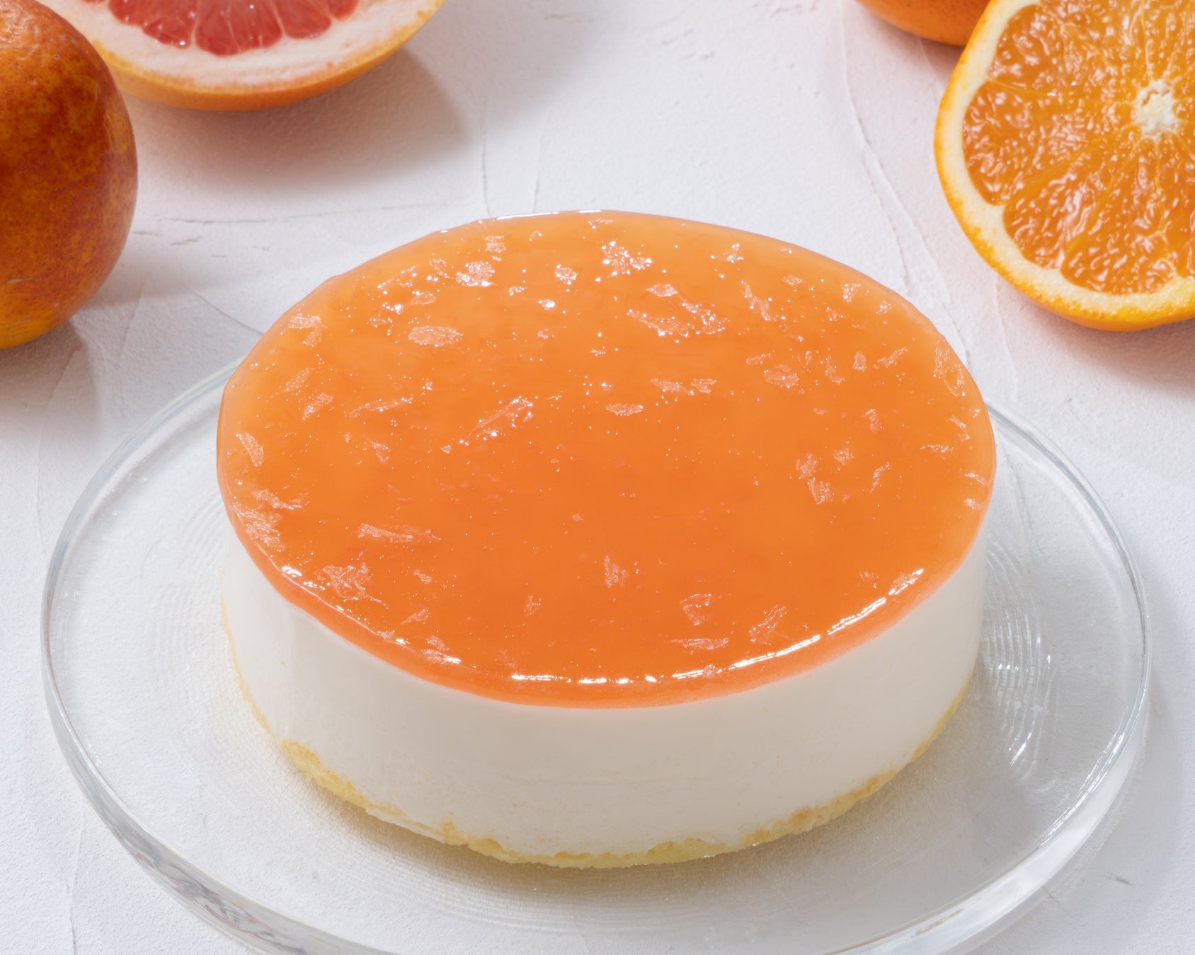 グレープフルーツの爽やかな酸味とほろ苦さ、オレンジの果肉と甘みが一体となってとけあうムースケーキ。ムースにはやや酸味のあるフロマージュブランも加え、柑橘の甘酸っぱさをすっきりと引き立てます。ブラッドオレンジやグレープフルーツを使った艶やかなジュレが瑞々しい逸品です。