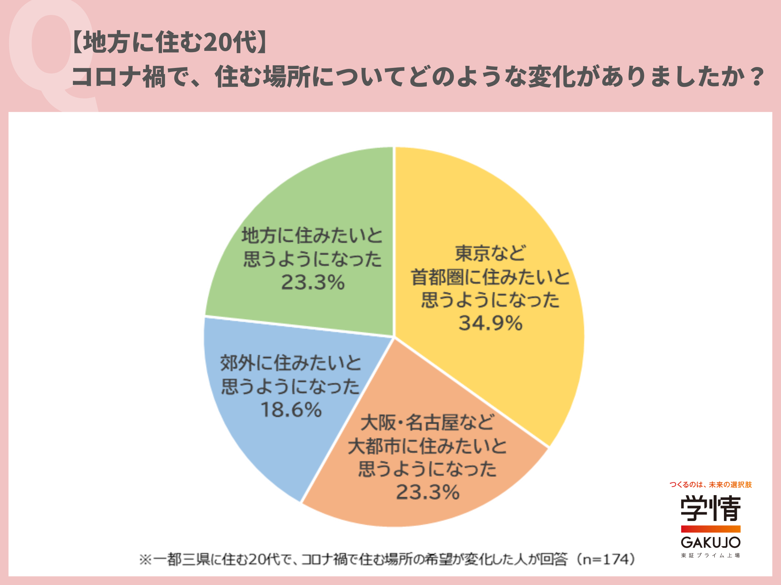 地方に住む20代の約2割が、コロナ禍で「住む場所」の希望に変化。「東京など首都圏に住みたい」が最多。「生活費が高くても、経験できることが多い」の声/20代対象アンケート