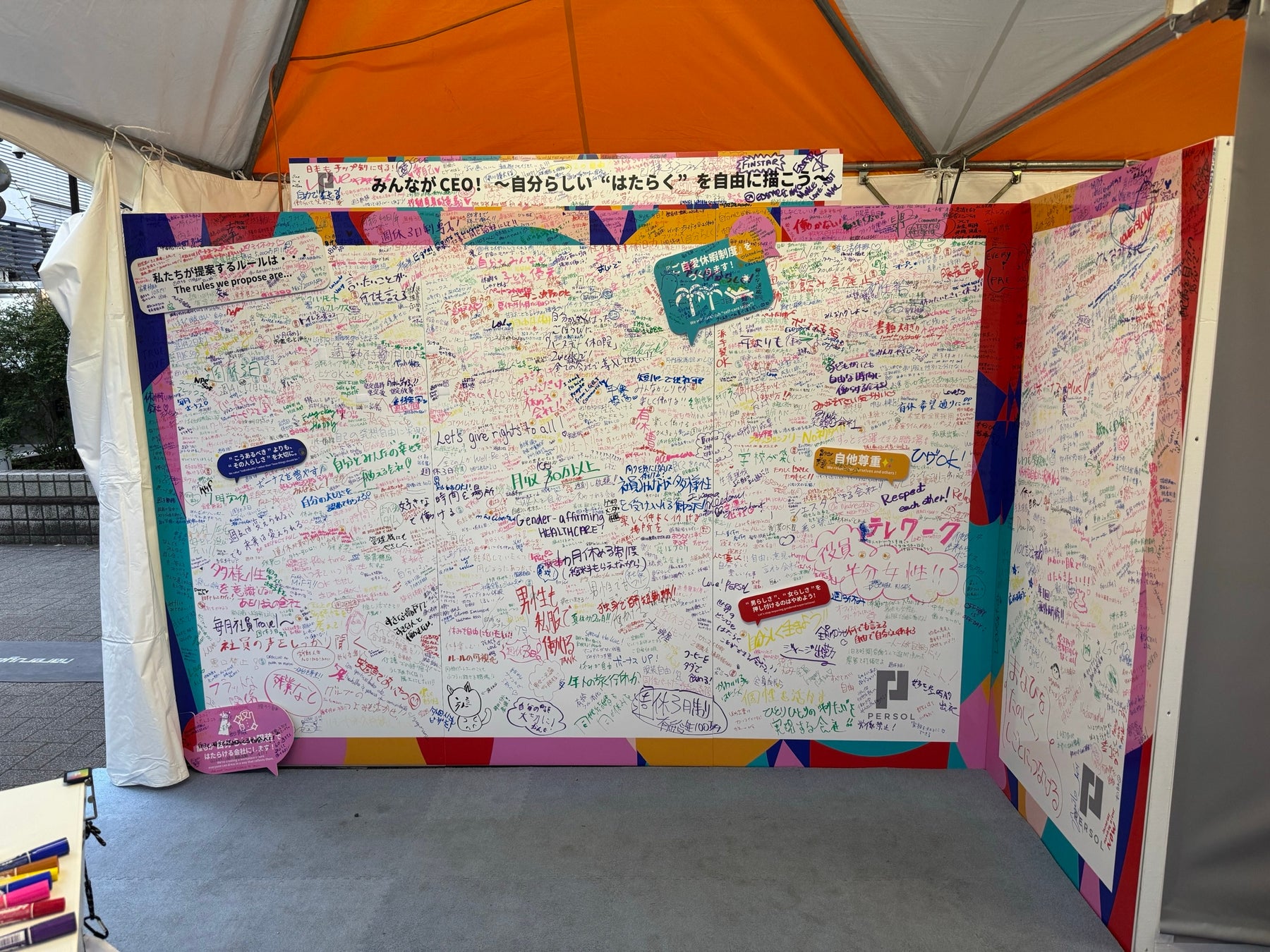 ~100名以上の有志社員が参加、ブース来場者約3,300名が自由に描いた“はたらく”ルールボードが完成~