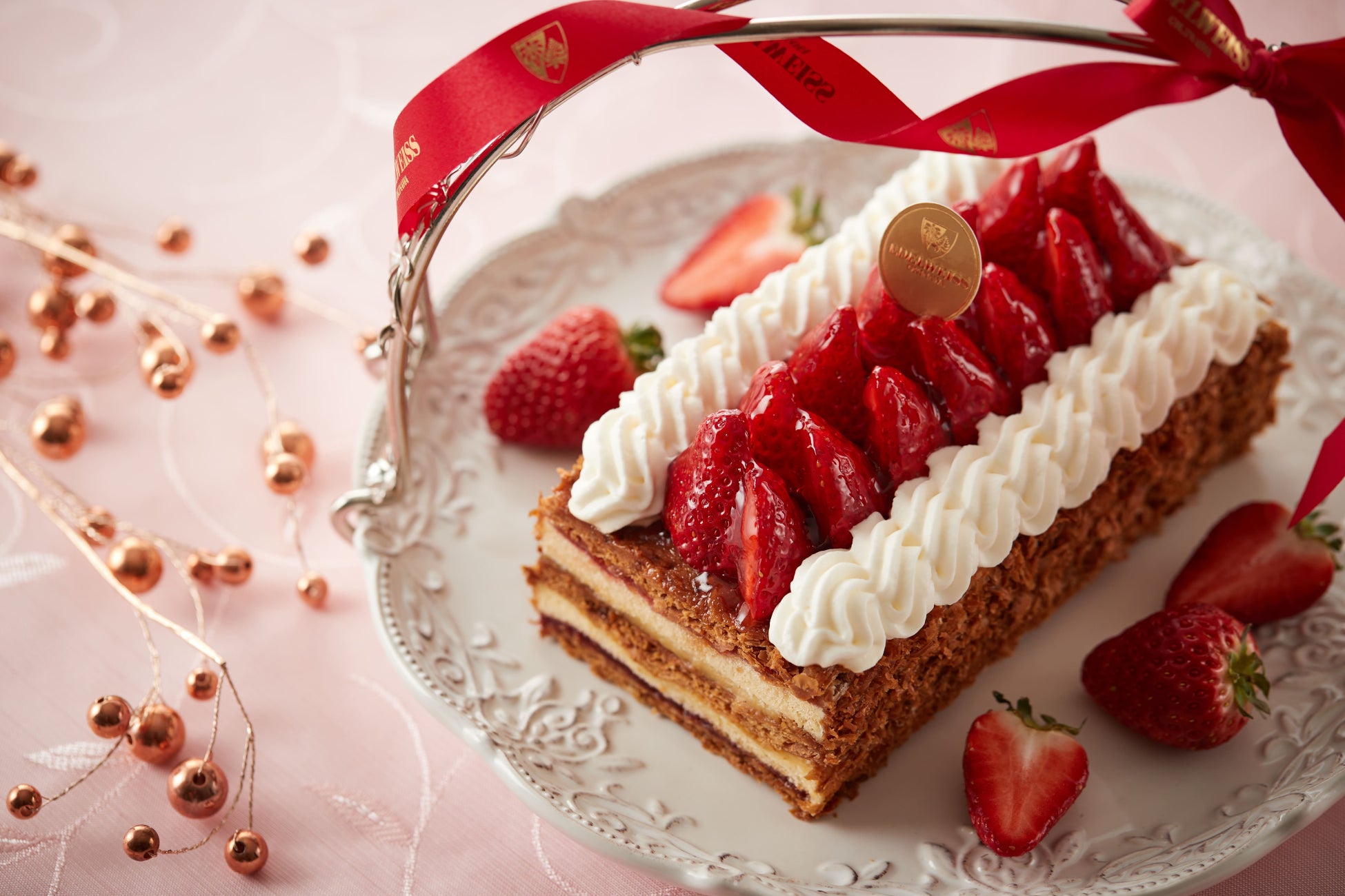バターを何層にも折込み、ザックリ食感に焼き上げたパイ生地にパティシエが丁寧に炊き上げるコク深い味わいのカスタードクリームと自慢のシャンティを重ね、苺を贅沢に使用して仕上げた特別なナポレオン・パイ。