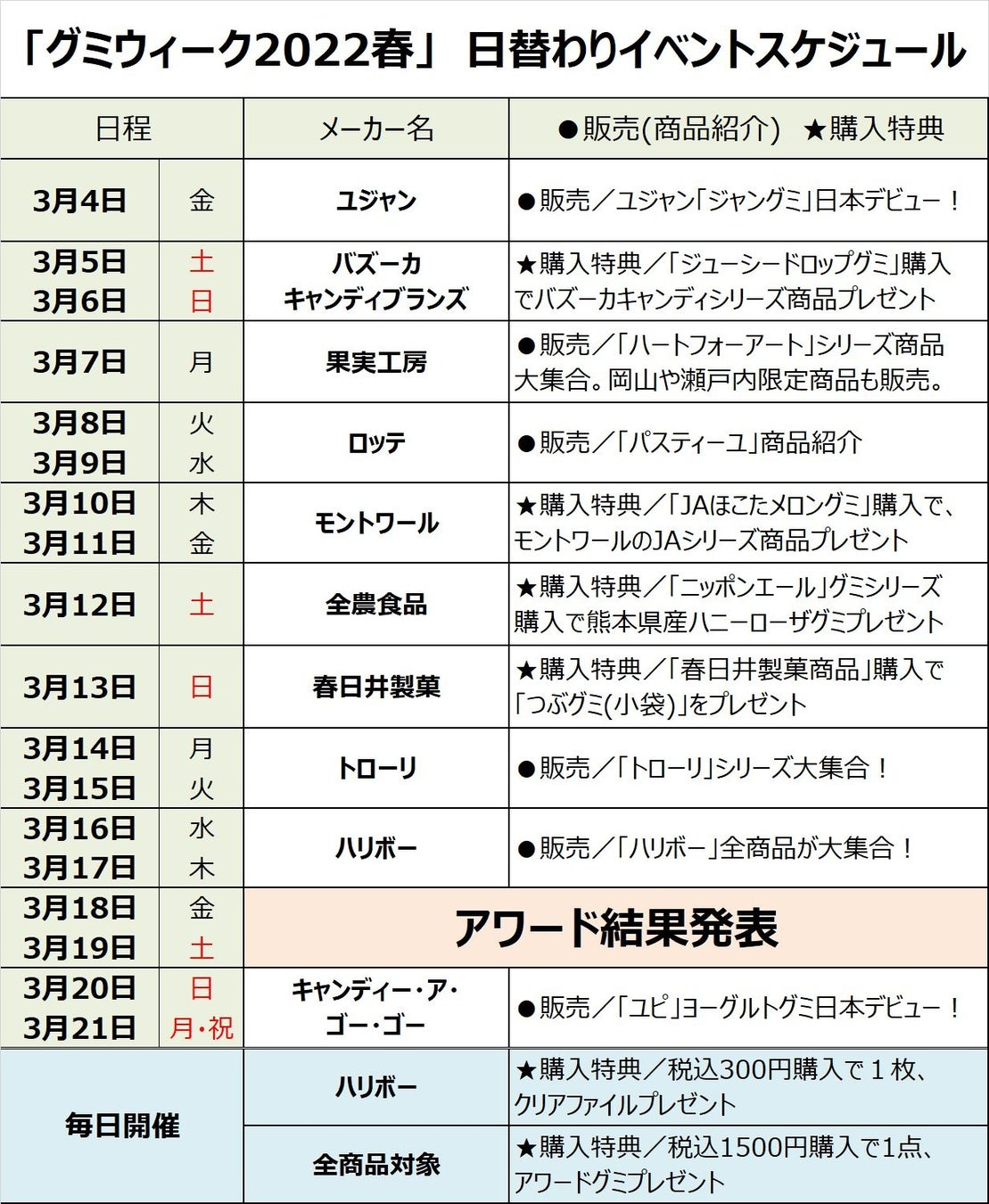 ●グミ好きさん必見!グミメーカーの日替わり企画開催!
