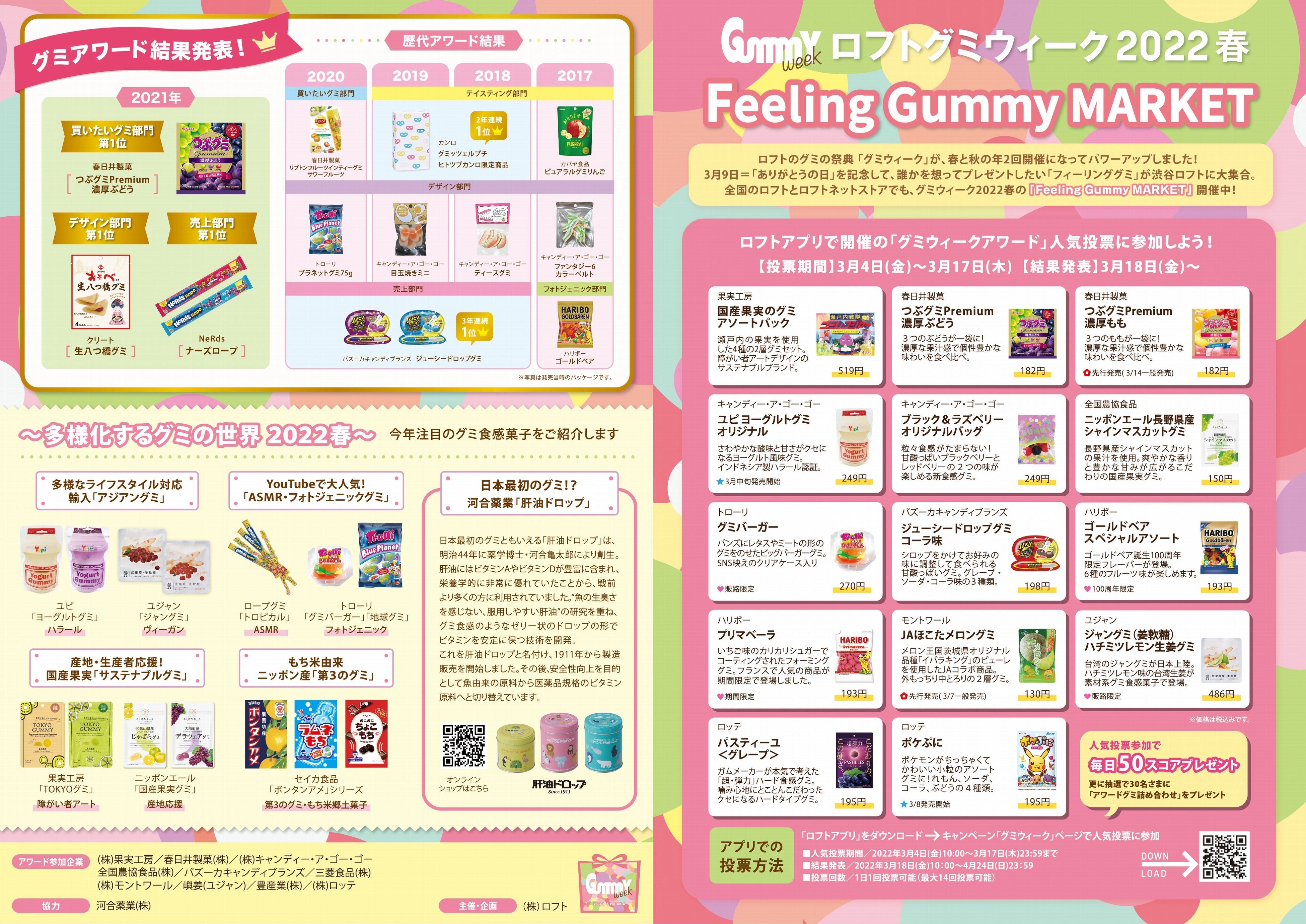 ① 「プレゼントしたいグミ部門」・・・ロフトアプリでオンライン参加。