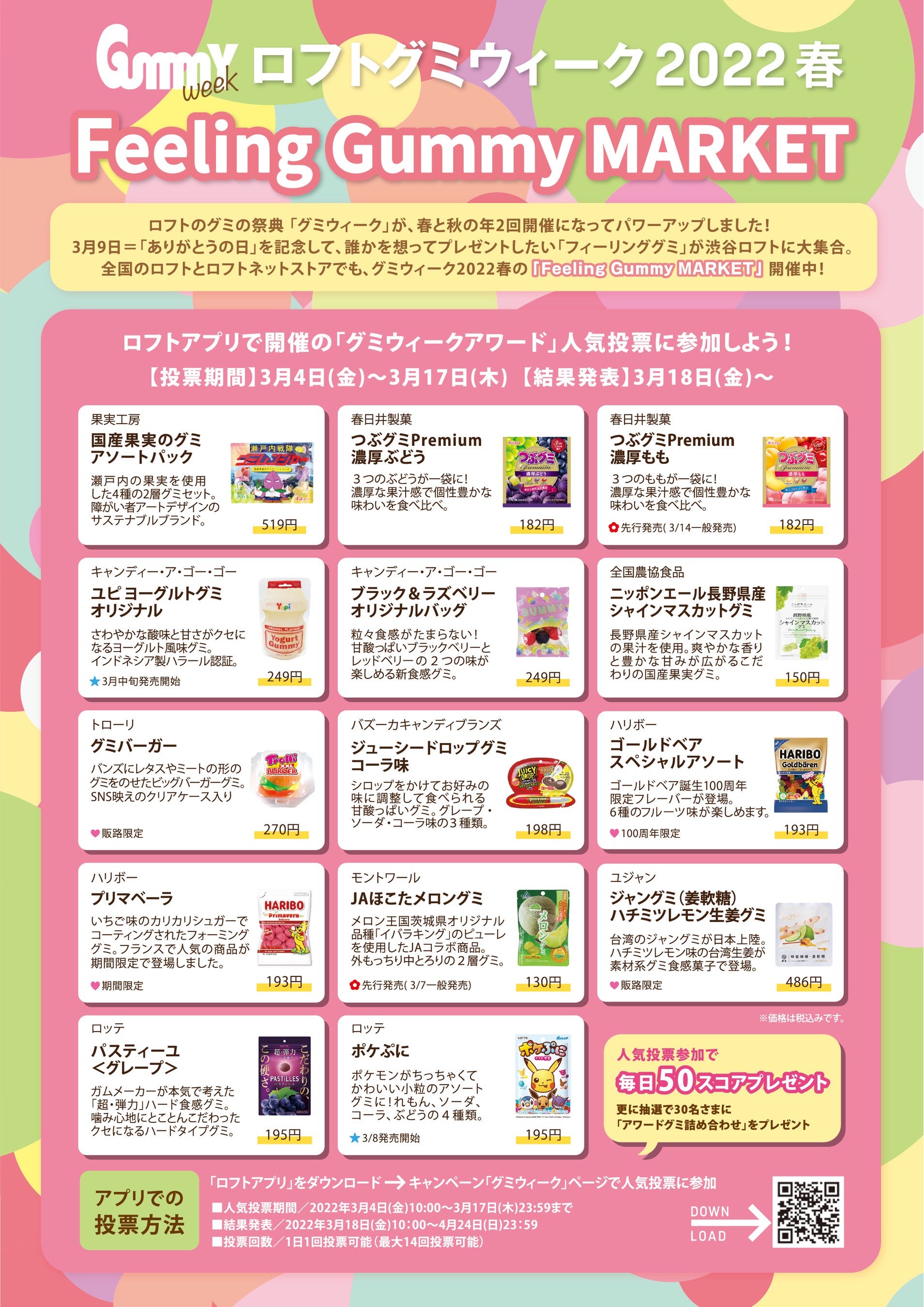 *ロフトアプリの人気投票に参加すると、抽選で30名様にアワード参加のグミ詰め合わせをプレゼント。1日1回、14日間投票できます。