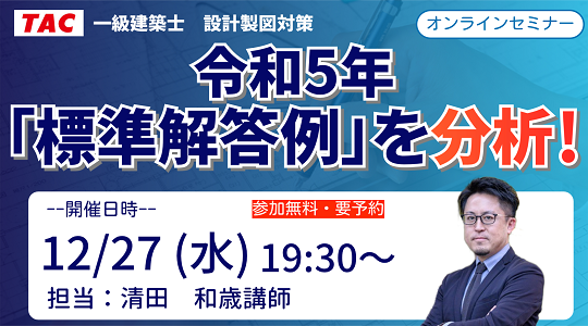 【TAC建築士】オンラインセミナー開催 一級建築士(製図)令和5年「標準解答例」を分析!