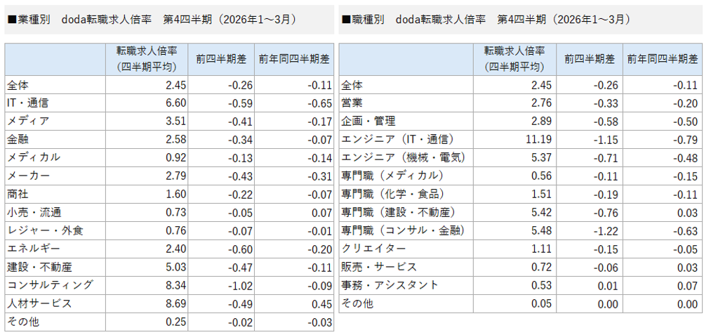 doda転職求人倍率 2026年3月・2025年第4四半期レポート