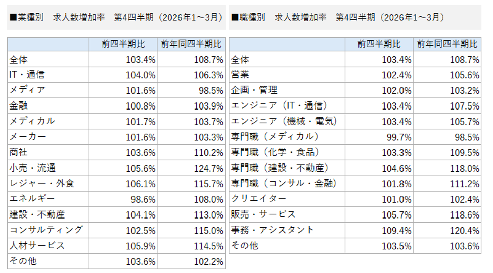 【転職求人倍率(業種別・職種別)/2025年 第4四半期(1~3月)】