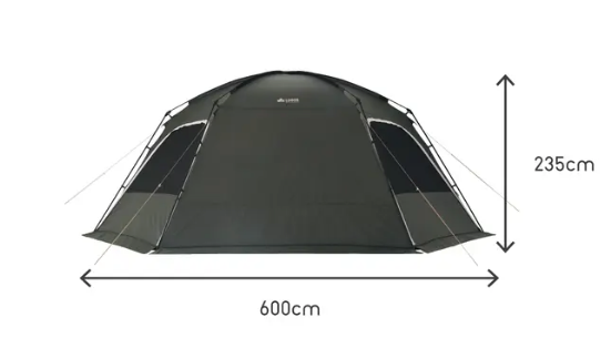 全長約6mで、ドーム内に8人分のテーブルやチェア、テントなどをセッティングしてもゆったりくつろげるサイズ感。ファミリーキャンプはもちろん、グループキャンプやイベントにも最適。